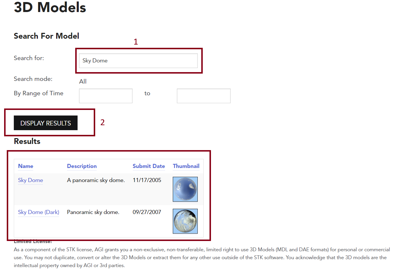 For our particular model, we will look for the model called "Sky Dome":