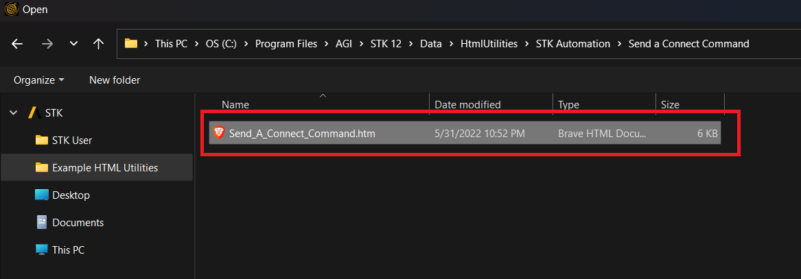 Finally, double-click on the .htm file to open it in the STK Web Browser: