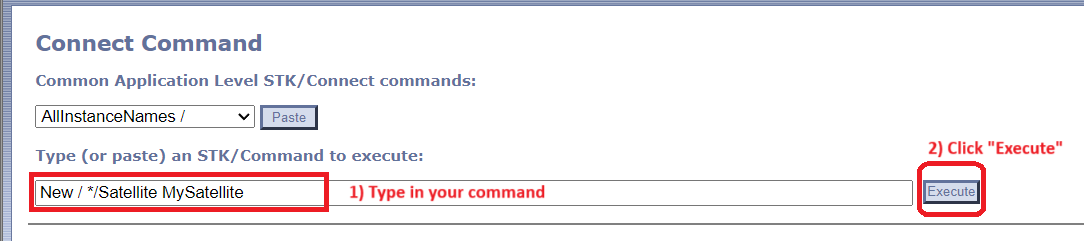 A simple connect command example for creating a new satellite on the current opened scenario's central body would be:
