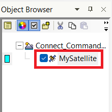- You can now notice the new object in your component browser, but our satellite is not propagated so it is not visible in 3D yet. It just exists as a satellite object:
