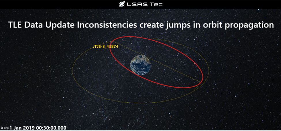 Since the TLE is being updated only a couple of times a day in the best-case scenario, we should also witness significant gaps in between the initial and final orbits.