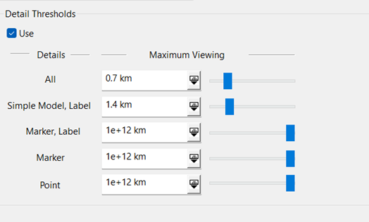Increase the Marker, Label maximum viewing threshold to the maximum value to be able to see the label from afar and click Ok