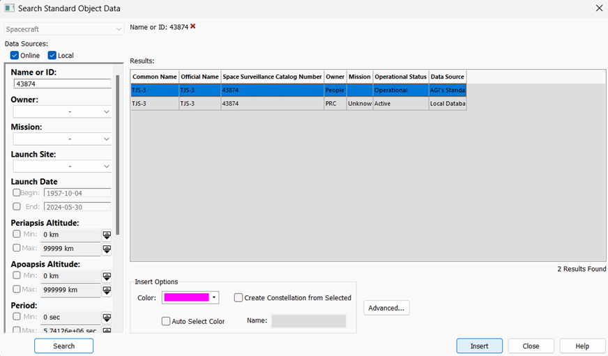 In the Name or ID field, input 43874 which is the Space Surveillance Catalog Number of TJS-3.