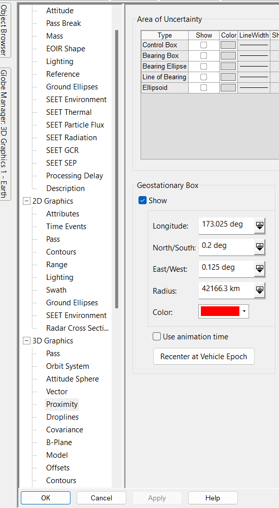 If you go back to the 3D Graphics Window, you will be able to see the new GEO slot box and animate your scenario from the 1st of July to the 1st of September 2023 and see that TJS-3 is not getting outside of the boundaries of the box, or it is rarely doing so